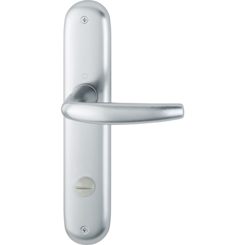 Súprava kľučiek Atlanta s dlhým štítkom, WC, hr.dverí 35-45, strieb.elox