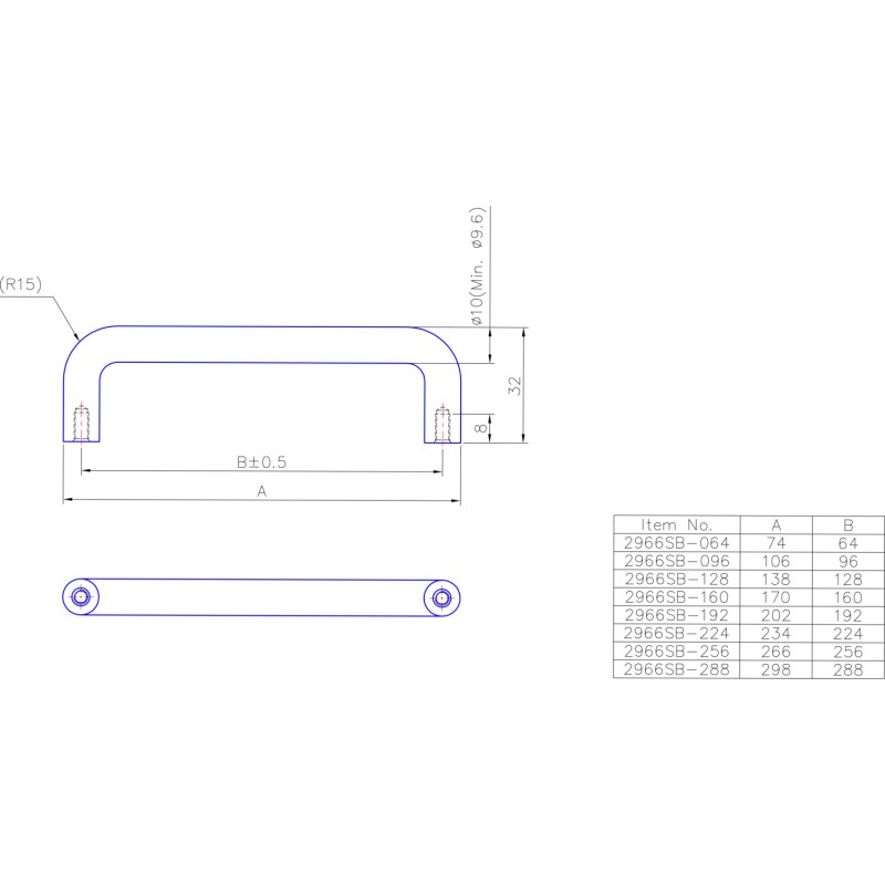 Nábytková úchytka ø10mm, vzdialenosť dier 96mm, š. 106mm, oceľ matne poniklovaná