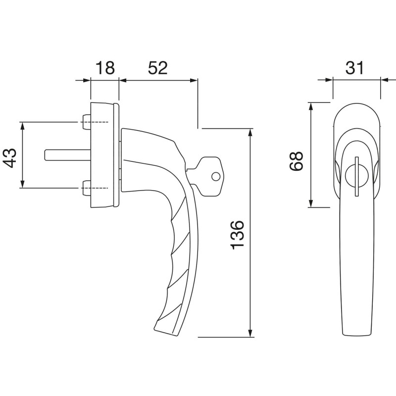 HOPPE okenná kľučka ATLANTA, uzamykateľná Secustik, strieborne eloxovaný hliník