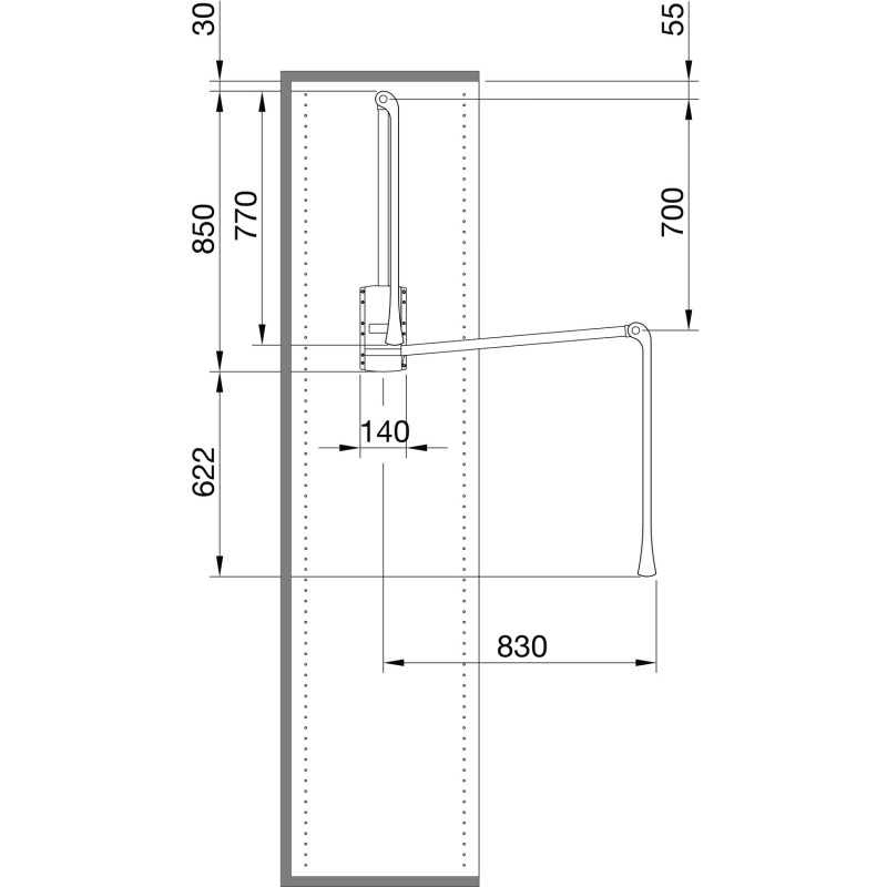 Aby sa sklopná šatníková tyč mohla namontovať do zadných štandardných otvorov, bolo vyvinuté zariadenie, ktoré udržuje šikmú polohu tyče. Je priložené bezplatne ku každej sklopnej šatníkovej tyči. Pozor: pri položke 103 325 113 (870-1190 mm) nie je možné.